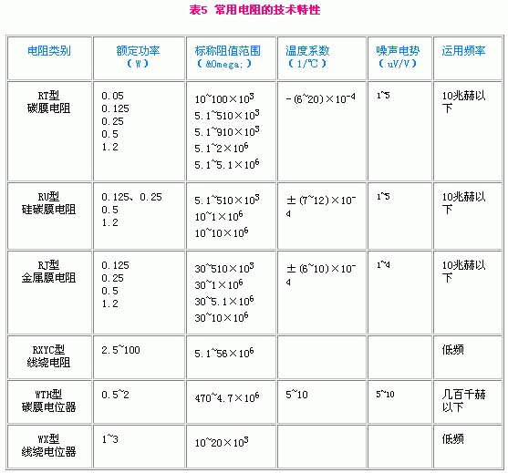 常用电阻有碳膜电阻、碳质电阻、金属膜电阻、线绕电阻和电位器等。表1是几种常用电阻的结构和特点。